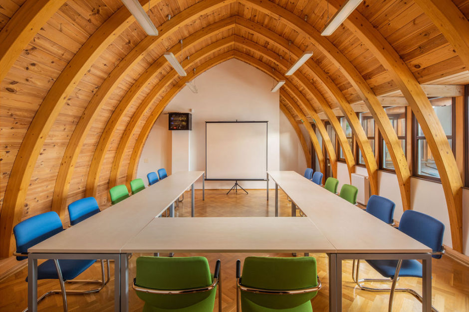 A nagy terem 56 fő befogadására alkalmas. Projektoros vetítésekre is van lehetőség.